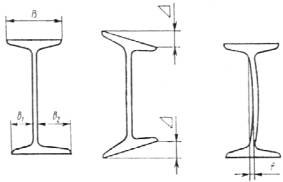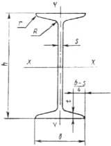 h — высота двутавра; b — ширина полки; s — толщина стенки; t — средняя толщина полки; R — радиус внутреннего закругления; r — радиус закругления полки Черт. 1 Примечание. Уклон внутренних граней полок должен быть 6—12 %. Таблица 1