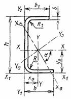 - расстояние от центра тяжести до наружной грани большой полки; x0 - расстояние от центра тяжести до наружной