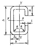 Условные обозначения к чертежу и табл. 1: h - высота профиля; b - ширина профиля; а - ширина полки; S - толщина профиля; R - радиус кривизны; I - момент инерции; W - момент сопротивления; i - радиус инерции; zо - расстояние от центра тяжести до наружной поверхности стенки. 3. Размеры, площадь поперечного сечения, справочные величины для осей и масса 1 м профиля должны соответствовать указанным в табл. 1. 4. (Исключен, Изм. № 1). 5. Предельные отклонения по размерам поперечного сечения профилей должны соответствовать указанным в табл. 2. Таблица 2 мм