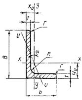уголков, площадь поперечного сечения, справочные величины для осей и массы 1 м
