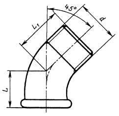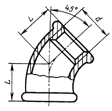 Примеры условных обозначений Проходного угольника с углом 45° исполнения 1 без покрытия с Dу = 40 мм: Угольник 45°- 1-40 ГОСТ 8946-75 То же, с цинковым покрытием: Угольник 45°-1-Ц-40 ГОСТ 8946- 75. (Введен дополнительно, Изм. № 2). 2. Конструктивные размеры и технические требования - по ГОСТ 8944-75. |