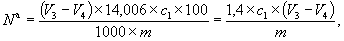 А.1. При определении азота полумикрометодом Кьельдаля массовую долю азота в аналитической пробе Na, в процентах, вычисляют по формуле