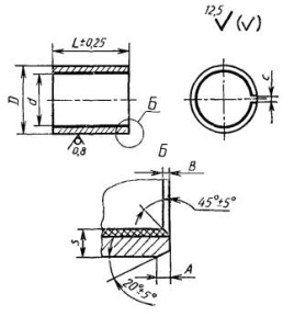* Номинальный диаметр втулки в сжатом состоянии. ** Внешний диаметр втулки до монтажа в сжатом состоянии. *** Зазор cmax в свободном состоянии. Пример сокращенного обозначения втулки диаметром d = 20 мм, длиной l = 15 мм: 2015 KU ГОСТ 28773-90 То же, полного обозначения: Втулка 2015 KU ГОСТ 28773-90 1.2. При d £ 8 мм острые кромки должны быть притуплены. При d ³ 10 мм на наружной цилиндрической поверхности должен быть обозначен товарный знак изготовителя и сокращенное обозначение втулки. ПРИЛОЖЕНИЕ