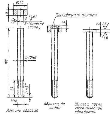 где Pmax - максимальная разрушающая нагрузка, Н (кгс); Fn - площадь паяного шва, мм2. Предел прочности на срез (τ), МПа (кгс/мм2), вычисляют по формуле
