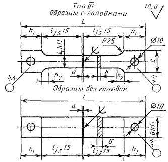L = 2(h1 + l) - b Черт. 12 Таблица 7 Размеры плоских образцов, мм