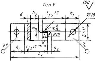 Толщина материала δ > 3 мм; M = (B + a)/2; L = 2(h + l) - b; K = b + h2 Черт. 13 Варианты исполнения головок образцов Черт. 14 Таблица 8 Размеры головок образцов, мм