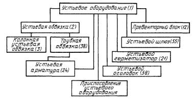 устьевого оборудования, включающего составные части разных видов, выделяемых по