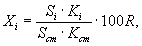где mi - масса компонента в калибровочной смеси, г; тст - масса компонента в калибровочной смеси, выбранного в качестве стандарта (бензол), г; Si - площадь пика компонента в калибровочной смеси; Sст - площадь пика компонента в калибровочной смеси, выбранного в качестве стандарта. 5.2. Хроматограмму бензина рассчитывают методом внутренней нормализации (сумма площадей всех пиков на хроматограмме принимается равной 100 % с учетом поправочных коэффициентов). Массовую долю бензола (X) в процентах вычисляют по формуле