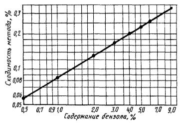 где Xi, ρi - массовая доля и плотность индивидуальных ароматических углеводородов и групп ароматических углеводородов, элюируемых одним пиком на хроматограмме и рассчитанных на основании индивидуального углеводородного состава бензина риформинга. Плотности индивидуальных ароматических углеводородов и групп ароматических углеводородов, идентифицированные на хроматограмме, приведены в приложении. 5.5. За результат испытания принимают среднеарифметическое значение результатов двух последовательных определений и округляют до десятичного знака. 6. ТОЧНОСТЬ МЕТОДА6.1. Сходимость Два результата определений, полученные одним исполнителем, признаются достоверными (с 95 %-ной доверительной вероятностью), если расхождение между ними не превышает значения, приведенного на черт. 2 для большего результата для массовой доли бензола и 1 % - для суммарной массовой доли ароматических углеводородов. Черт. 2 6.2. Воспроизводимость Два результата испытаний, полученные в двух разных лабораториях, признаются достоверными (с 95 %-ной доверительной вероятностью), если расхождение между ними не превышает 0,4 % для массовой доли бензола и 2 % - для суммарной массовой доли ароматических углеводородов. ПРИЛОЖЕНИЕСправочное ПЛОТНОСТЬ АРОМАТИЧЕСКИХ УГЛЕВОДОРОДОВ, ИДЕНТИФИЦИРОВАННЫХ НА ХРОМАТОГРАММЕТаблица 2