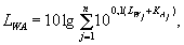 где Pi - составляющая звуковой мощности через сегмент i, вычисленная по формуле (11); Р0 = 10-12 Вт; N - общее число точек измерения (сегментов). Если 9.3 Расчет корректированного уровня звуковой мощностиКорректированный уровень звуковой мощности LWA в дБ(A) рассчитывают по формуле