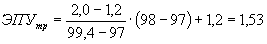 где PL - «вероятность непревышения» при сроке L (при тех же значениях ЭПУ, что и для соответствующей Р50); Р50 - «вероятность непревышения» при сроке L = 50 лет (по таблице Б.1). Б.4 Если необходимо определить значение ЭПУ (в относительных единицах) при заданной «вероятности непревышения» PLзад при сроке L, отличающемся от 50 лет, проводят следующие вычисления: а) пользуясь формулой (Б.1), определяют значения «вероятностей непревышения» РL1 и РL2 для двух соседних значений Р50, указанных в таблице Б.1 и обозначаемых соответственно Р50.1 и P50.2 Значения Р50.1 и P50.2 выбирают такими, чтобы полученные после вычисления значения РL1 и РL2, как правило, удовлетворяли соотношению (Б.2): РL1 < PLзад <РL2 (Б2) Примечание - Согласно Б.2 значение ЭПУ для РL1 является таким же, как для Р50.1, а для PL2 - как для P50.2; б) определяют искомое значение ЭПУтр, по формуле (Б.3)