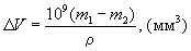 где А - работа трения в Дж (кгс×м), которую вычисляют по формуле А = F×l, где F - среднее значение силы трения за время испытания, Н (кгс); l - путь трения, м, вычисляемый по формуле l = v×t = pDn, где v - скорость скольжения по центру образцов, м/с; t - время испытания, с; D - расстояние между центрами образцов, м; п - число оборотов диска за время испытания. Расчет работы трения для прибора типа МИ-2 приведен в приложении. Убыль объема резины (DV) в мм3 (см3) двух испытуемых образцов вычисляют по формулам