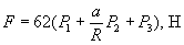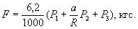 где п - число оборотов диска за время испытания; а - расстояние от точки закрепления пружинного динамометра до центра вращения рычага, м (см); R - расстояние от точки подвеса груза (Р1) до центра вращения рычага, равное 0,42 м (42 см); Р1 - среднее значение силы, приложенной к длинному плечу рычага для уравновешивания вращающего момента, создаваемого трением образцов об истирающую поверхность, Н (гс); Р2 - среднее показание пружинного динамометра во время испытания, Н (гс); P3 - постоянная прибора, Н (гс). Способ определения Р3 указан в технической документации на прибор МИ-2; 3,67×1010 - коэффициент пересчета работы трения в гс×см на кВт×ч. При отсутствии пружинного динамометра в расчетной формуле слагаемое Р2а трехчлена в скобках равно нулю. 3. Вычисление силы трения и коэффициента трения 3.1. Коэффициент трения (m) вычисляют по формуле