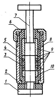 Дата введения 01.01.77 Настоящий стандарт распространяется на каменноугольный, нефтяной, пековый и сланцевый коксы, антрацит, термоантрацит и искусственный графит и устанавливает метод измерений удельного электрического сопротивления в интервале 10-5 - 10-1 Ом м. Сущность метода заключается в измерении падения напряжения на участке столбика углеродистого материала с крупностью зерен 0,315 - 0,400 мм, заключенного в матрице между двумя пуансонами под давлением (5,88 ± 0,03) МПа [(60,0 ± 0,3) кгс/см2] при прохождении постоянного тока. (Измененная редакция, Изм. № 2). 1. МЕТОД ОТБОРА ПРОБ1.1. Отбор проб - по ГОСТ 16799-79, ГОСТ 23083-78, ГОСТ 10742-71. 2. АППАРАТУРА2.1. Для проведения испытания применяют: установку УЭСП-1 (черт. 1), изготовляемую по чертежам Государственного научно-исследовательского института электродной промышленности (ГосНИИЭП), состоящую из рычажно-винтового пресса, обеспечивающего давление (5,88 ± 0,03) МПа [(60,0 ± 0,3) кгс/см2] и матрицы (черт. 2): внутренний диаметр матрицы (15,96 + 0,07) мм, допускается износ матрицы до размера 16,2 мм; толщина потенциальных зондов - (1,00 - 0,02) мм; расстояние между потенциальными зондами - (8,00 + 0,02) мм; источник стабилизированного постоянного тока напряжением не более 36 В, обеспечивающий силу тока 0,5 А; амперметр постоянного тока по ГОСТ 8711-78 класса точности не более 1; милливольтметр постоянного тока по ГОСТ 8711-78 класса точности не более 0,5 или потенциометр постоянного тока для измерения падения напряжения по ГОСТ 7164-78, ГОСТ 9245-79 класса точности не более 0,5; динамометр сжатия образцовый ДОСМ 3-0,2 по ГОСТ 9500-84; сетки полутомпаковые Л 04 К и 0315 К по ГОСТ 6613-86; цилиндр 1 - 10 по ГОСТ 1770-74 или пробирка по ГОСТ 25336-82; контрольный столбик диаметром 15 мм, высотой (18,0 ± 0,05) мм; удлиненная воронка латунная с рассекателем (черт. 3); ерш для чистки матриц; нутрометр 10 - 18 по ГОСТ 9244-75; секундомер механический; электропечь СНОЛ по ОСТ 16.0.801.397-87; противень размером не менее 25×25 см из коррозионно-стойкого материала с бортиками высотой 5 см. Примечание. Диапазон измерений электроизмерительных приборов выбирается с таким расчетом, чтобы отсчет показаний проводился во второй или последней трети шкалы прибора. Допускается применять другие электроизмерительные приборы при условии обеспечения ими требований настоящего стандарта. (Измененная редакция, Изм. № 1, 2, 3). Установка УЭСП-1 1 - шток; 2 - матрица; 3 - центрирующая чашка; 4 - силовой винт; 5 - дугообразный кронштейн; 6- груз; 7 - индикатор; 8 - плита; 9 - двуплечий рычаг; 10 - регулировочные винты; 11 - призма Черт. 1 Матрица 1 - нижний пуансон; 2 - изоляционная шайба; 3 - нижний потенциальный зонд; 4 - верхний потенциальный зонд; 5 - корпус; 6 - гайка; 7 - верхний пуансон; 8 - верхний токовый зонд; 9 - изоляционные втулки; 10 - нижний токовый зонд Черт. 2 Воронка Черт. 3 3. ПОДГОТОВКА К ИСПЫТАНИЮ3.1. Часть общей пробы измельчают до размера частиц 0 - 3 мм, сокращают методом квартования до 500 г и подсушивают в сушильном шкафу при температуре 180 - 190 °С в течение 15 мин. Далее пробу рассеивают на ситах № 04 и 0315. Остаток на верхнем сите № 04 измельчают до полного прохождения через сито. Для анализа отбирают 20 - 30 г пробы, оставшейся на сите с сеткой № 0315 и измельченной до размера частиц 0,315 - 0,400 мм. Оставшуюся часть пробы ссыпают в герметически закрывающуюся банку и хранят в сухом помещении на случай проведения повторных определений удельного электрического сопротивления. 