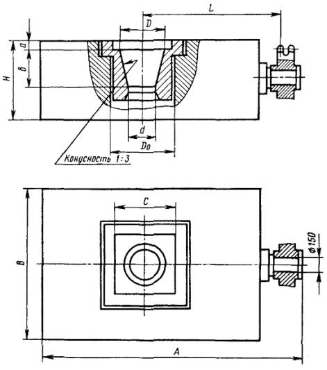 Дата введения 01.01.80 1. Настоящий стандарт распространяется на роторы для эксплуатационного и глубокого разведочного бурения (далее буровые роторы), а также для освоения и ремонта (далее роторы для ремонта) нефтяных и газовых скважин. Стандарт не распространяется на гидроприводные роторы, а также на роторы, являющиеся составными частями подъемных установок, конструктивно совмещенные с трубовращателями, механическими ключами и пр. (Измененная редакция, Изм. № 3). 2. Основные параметры и размеры буровых роторов должны соответствовать указанным на чертеже и в таблице 1.