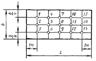 Изготовителю жидкого пека допускается отбирать пробу любым пробоотборником только от верхнего слоя продукта сразу же после его загрузки в транспортное средство. (Измененная редакция, Изм. № 2). 2.3.5. Пробы из бочек и другой транспортной тары отбирают стеклянной трубкой. Трубку, открытую с обеих концов, медленно погружают до дна тары оттянутым концом вниз, затем закрывают верхнее отверстие и трубку извлекают. Пробы темных продуктов допускается отбирать желонкой диаметром 15 - 18 мм. От каждой бочки, включенной в выборку, отбирают одну пробу. 2.4. Отбор проб сыпучих продуктов 2.4.1. Пробы сульфата аммония, гранулированного пека и других сыпучих продуктов из потока при погрузке или выгрузке продукта, отбирают механическими порционными пробоотборниками, а также механическим пробоотборником-делителем или ручными пробоотборниками, обеспечивающими полное пересечение потока в местах перепада, через равные интервалы времени в течение всего периода погрузки или выгрузки продукта. 2.4.2. Пробы из штабеля и от полностью загруженного открытого вагона отбирают ручным щелевидным пробоотборником по схеме, указанной на черт. 9. о - точки отбора Черт. 9 2.4.3. Из мешков отбирают по две пробы ручным щелевидным пробоотборником, погружая его на 3/4 глубины мешка, по схеме, указанной на черт. 10. Черт. 10 2.4.4. Пробы сульфата аммония допускается отбирать по ГОСТ 21560.0-82. 2.5. Отбор проб продуктов в кусках 2.5.1. Пробы дробленого нафталина и других продуктов в кусках отбирают из потока механическим пробоотборником. 2.5.2. Пробы из мешков отбирают вручную совком из двух мест верхнего слоя мешка. Размер совка должен быть примерно в два раза больше максимального размера куска. 2.6. Отбор проб продуктов в плитах 2.6.1. Пробы кристаллического и прессованного нафталина отбирают пневматической сверлильной машиной или ручной дрелью, высверливая одно отверстие в бруске на глубину 50 мм в боковой грани плиты по радиусу или по большей оси симметрии (в зависимости от формы) до ее середины. 2.6.2. Пробу собирают в плоский приемный совок, расположенный под сверлом пробоотборника. 3. ТРЕБОВАНИЯ БЕЗОПАСНОСТИ3.1. При выполнении работ по отбору проб должны соблюдаться требования, предусмотренные ГОСТ 12.1.007-76 и правилами безопасности в коксохимической промышленности, утвержденными в установленном порядке. 3.2. Содержание вредных веществ в воздухе рабочей зоны не должно превышать предельно допустимых концентраций (ПДК). Контроль за концентрацией вредных веществ проводят по методикам, разработанным в соответствии с ГОСТ 12.1.016-79. 3.3. При ручном опробовании взрывоопасных, пожароопасных и токсичных химических продуктов коксования контролер отбирает пробы в присутствии представителя цеха производимой продукции. 3.4. При отборе проб контролер должен стоять боком к ветру в целях предотвращения вдыхания паров вредных продуктов. 3.5. В местах отбора проб должны быть установлены светильники во взрывозащищенном исполнении. Отбор проб легковоспламеняющихся жидкостей проводят в специальной одежде и обуви, изготовленных из материалов, не накапливающих статическое электричество, в соответствии с требованиями ГОСТ 12.4.124-83. 3.7. Запрещается отбирать пробы химических продуктов коксования на открытом воздухе во время грозы, сильных атмосферных осадков и бури. 3.8. Для очистки посуды от остатков проб пека, смолы и