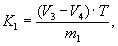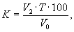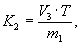 где V2 - объем 0,05 моль/дм3 раствора гидроокиси калия, израсходованный на титрование, см3; Т - титр 0,05 моль/дм3 раствора гидроокиси калия, мг/см3; V0 - объем испытуемой пробы, см3; 100 - фактор пересчета на 100 см3 продукта. (Измененная редакция, Изм. № 1). 4.2. Кислотное число испытуемой пробы (K1) в мг КОН/г при использовании в качестве индикатора щелочного голубого вычисляют по формуле