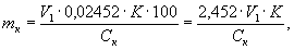 где V1 - объем раствора гидроокиси натрия, израсходованный на титрование, см3; 0,02452 - количество серной кислоты, соответствующее 1 см3 точно 0,5 н. раствора гидроокиси натрия, г; K - поправочный коэффициент для приведения фактического титра раствора гидроокиси натрия к точно 0,5 моль/дм3; Cк - концентрация кислоты, взятой для анализа, % (по массе). (Измененная редакция, Изм. № 1). 4. ОБРАБОТКА РЕЗУЛЬТАТОВ4.1. Массовую долю ароматических углеводородов (X) вычисляют по формуле