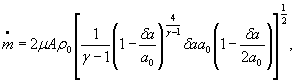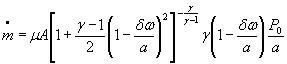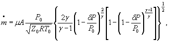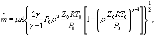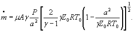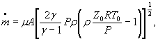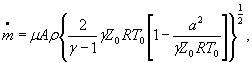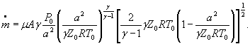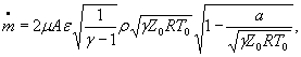 Обозначения: А - площадь проходного сечения канала; γ - показатель изоэнтропы; z0 - коэффициент сжимаемости изоэнтропически заторможенного газа; R - удельная газовая постоянная; μ - коэффициент расхода;
