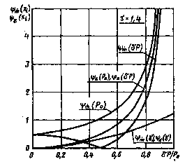Для газов с показателем изоэнтропы γ =1,4 такие зависимости приведены на чертеже.