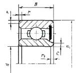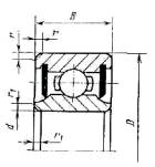 d - номинальный диаметр отверстия внутреннего кольца; D - поминальный диаметр наружной цилиндрической поверхности наружного кольца; B - номинальная ширина подшипника; r и r1, - номинальная координата монтажной фаски. Таблица 1 Серия