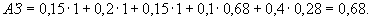 В приведенном примере: В=1, Т=1, С=1, П=0,6×0,8+0,4×0,5=0,68