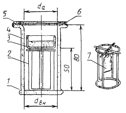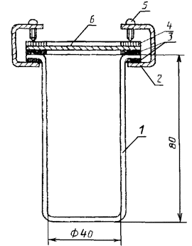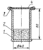 Дата введения 01.01.89 Несоблюдение стандарта преследуется по закону Настоящий стандарт устанавливает методы испытаний герметизирующих материалов: полимерных пленок, бумаги и ткани, имеющих пароводонепроницаемые покрытия, герметизирующих составов (герметики, замазки), применяемые при консервации изделий по ГОСТ 9.014-78 на длительное хранение в различных климатических районах. Перечень исследуемых свойств для каждого вида герметизирующего материала приведен в приложении 1. Стандарт не распространяется на листовые металлические материалы. 1. МЕТОД ОПРЕДЕЛЕНИЯ ПРОНИЦАЕМОСТИ К ПАРАМ ВОДЫ1.1. Сущность метода заключается в определении количества паров воды, проникающих через 1 м2 поверхности материала за 24 ч при определенной температуре и относительной влажности. 1.2. Метод применяется для испытания полимерных пленок, бумаги и ткани с пароводонепроницаемыми покрытиями. 1.3. Отбор проб и образцов 1.3.1. Отбор проб бумаги - по ГОСТ 8047-78. 1.3.2. Отбор проб полимерных пленок - по ГОСТ 11107-85. 1.3.3. Образцы для испытания бумаги и полимерных пленок вырезают из листов пробы. 1.3.4. Отбор образцов тканей - по ГОСТ 413-75. 1.3.5. Образцы или пробы из несвариваемых материалов должны иметь форму круга, диаметр которого должен быть на 8 мм меньше наружного диаметра отбортовки стеклянного стакана или равен наружному диаметру стального кольца для металлического стакана. 1.3.6. Образцы свариваемой полимерной пленки должны иметь форму полоски размером (200 × 110) мм. 1.3.7. Количество образцов или проб для испытания должно быть не менее трех. 1.4. Аппаратура, материалы и реактивы Эксикаторы - по ГОСТ 25336-82. Камера тепла или термостат, обеспечивающие поддержание температуры (60 ± 2) °С и относительной влажности воздуха (95 ± 5) %. Устройства или машины для сварки полимерных пленок. Весы лабораторные - по ГОСТ 24104-80 с погрешностью взвешивания не более 0,0001 г. Термограф - по ГОСТ 6416-75. Стаканы стеклянные с внутренним диаметром 40 мм, высотой 80 мм и отогнутыми под прямым углом плоскозашлифованными бортами шириной 8 мм (черт. 1) - для испытаний при температуре (20 ± 2) °С. Стаканы металлические с внутренним диаметром 40 мм, высотой 80 мм (черт. 2) - для испытаний при температурах (40 ± 2) °С и (60 ± 2) °С. 1 - стеклянный стакан; 2 - дистиллированная вода; 3 - парафин; 4 - образец или проба Черт. 1 1 - корпус металлического стакана; 2 - патрон из фольги; 3 - силикагель; 4 - резиновая прокладка; 5 - образец или проба; 6 - металлическое кольцо; 7 - втулка Черт. 2 Допускается применение стеклянных стаканов с внутренним диаметром 40 мм, высотой 80 мм с зажимами в виде струбцин (черт. 3) с отогнутыми под прямым углом плоскозашлифованными бортами шириной 8 мм (черт. 3) - для испытаний при температурах (40 ± 2) °С и (60 ± 2) °С. 1 - стеклянный стакан; 2 - скоба; 3 - резиновые прокладки; 4 - алюминиевое кольцо; 5 - прижимной винт; 6 - образец Черт. 3 Силикагель мелкопористый (гранулированный) - по ГОСТ 3956-76. Вода дистиллированная - по ГОСТ 6709-72. Парафин рафинированный кристаллический - по ГОСТ 23683-79. Бумага фильтровальная - по ГОСТ 12026-76. 1.5. Подготовка к испытаниям 1.5.1. Перед испытаниями образцы или пробы, подготовленные по пп. 1.3.4, 1.3.5, кондиционируют по ГОСТ 13523-78, режим 3. Образцы или пробы материалов, содержащие летучие компоненты (перхлорвиниловые и поливинилхлоридные пленки, комбинированные пленочные материалы, бумага и ткани с пароводонепроницаемыми покрытиями) пере