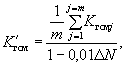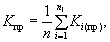 Для герметизирующих материалов всеклиматического исполнения значения весомостей принимают одинаковыми ωi = 1/n, где n - количество выбраковочных показателей. 13.4. Относительные коэффициенты Ki показателей свойств определяют как отношение величины i-го показателя, полученного при испытании к его требуемому значению, указанному в технической документации на материал конкретного вида. Для показателей, требуемые значения которых ограничены сверху, берется обратная величина. При этом обобщенный относительный коэффициент по прочностным показателям (Kпр) (разрывная нагрузка, раздирающая нагрузка, сопротивление прокалыванию, устойчивость к многократному изгибу) определяют как среднее арифметическое из относительных коэффициентов отдельных показателей и рассчитывают по формуле