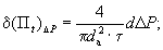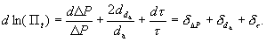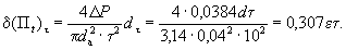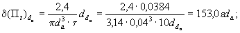 Абсолютные погрешности измеряемых параметров будут равны: εp1 = ±0,0002 г; εda = ±0,001 м; εp2 = ±0,0002 г; ετ = ±0,042 с; ε∆P = ±0,0004 г. Относительные погрешности измеряемых параметров: δ∆P = ±0,0004/0,0384 = ±0,0104 = ±1,04 %; δda = ±0,001/0,40 = ±0,025 = ±2,5 %; δτ = ±0,042/10 = ±0,0042 = ±0,42 %. 4. Расчетная формула (3) представляется в виде функции