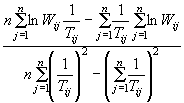 где j - порядковый номер температур испытаний (j = 1, 2, ..., n); i - порядковый номер концентрации аитиоксиданта в материале (i = 0, 1, 2,..., l); N - число параллельных проб (N = 1, 2,..., b). 7.3 Вычисляют средний арифметический интервал времени (