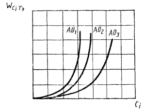 7.13 По вычисленному WciТэ = где WciТj - - скорость окисления материала при каждой из температур испытаний Тj и концентрации антиоксиданта Сi при заданном уровне изменения давления кислорода в системе; Тэ - эквивалентная температура. Для условий хранения эквивалентную температуру устанавливают в соответствии с ГОСТ 9.707, приложение 5. WciТэ вычисляют для каждого из заданных концентраций антиоксиданта и заданного уровня изменения давления кислорода в системе. 7.14 Строят график зависимости скорости окисления материала WciТэ от концентрации антиоксиданта сi (кривую прогноза) при температуре эксплуатации или хранения. Если заданная температура эксплуатации или хранения изменяется, для каждой из Тэ необходимо строить свою кривую прогноза. 7.15 По полученным кривым прогноза определяют скорость окисления нестабилизированного и стабилизированного материала при заданной температуре. 7.16 Строят кривые прогноза по 7.14 для материалов, стабилизированных различными антиоксидантами. 7.17 Сопоставляют между собой кривые прогноза для материала, стабилизированного различными антиоксидантами (АО), для одной и той же заданной температуры Тэ (черт. 3). Наиболее эффективным для стабилизации данного материала является тот антиоксидант, для которого скорость окисления минимальна при равных концентрациях антиоксиданта. Черт. 3 8 ТРЕБОВАНИЯ БЕЗОПАСНОСТИ8.1 Требования безопасности - по ГОСТ 12.1.007, ГОСТ 12.1.019, ГОСТ 12.3.002 и ГОСТ 12.3.019. 8.2 Требования пожарной безопасности - по ГОСТ 12.1.004. 8.3 Метеорологические условия, уровень звукового давления, уровни звука и содержание вредных примесей в рабочей зоне помещений для испытаний не должны превышать норм, установленных СН-245 и утвержденных Госстроем СССР. ПРИЛОЖЕНИЕ АРекомендуемое ПРОТОКОЛ ИСПЫТАНИЙ ЭФФЕКТИВНОСТИ АНТИОКСИДАНТОВ1 Наименование, марка антиоксиданта 2 Завод - изготовитель антиоксиданта 3 Нормативно-техническая документация, по которой выпускается антиоксидант 4 Наименование полимерного материала, в который введен антиоксидант 5 Завод-изготовитель полимерного материала 6 Нормативно-техническая документация, по которой выпускают полимерный материал 7 Условия испытаний 8 Обозначение настоящего стандарта