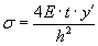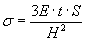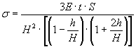 где Е - модуль упругости, Н/м2; t - толщина образца, м; Н - максимальный прогиб, м; у - расстояние между внешними опорами, м. Способы нагружения образцов при постоянной деформации а - образец, нагруженный в двух точках; б - образец, нагруженный в трех точках; в - образец, нагруженный в четырех точках; г - образец в виде двойного бруса; д - образец на сплошной опоре; е - образец, нагруженный с помощью рычага; 1 - образец; 2 - рычаг Черт. 1 3.4.1.4. Четырехточечное нагружение (черт. 1в). 3.4.1.4.1. Четырехточечное нагружение обеспечивает постоянное продольное растягивающее напряжение на выпуклой поверхности образца между внутренними опорами. 3.4.1.4.2. Размеры образца - по п. 3.4.1.3.2. 3.4.1.4.3. Образец закрепляют вблизи от концов и изгибают двумя внутренними опорами. Внутренние опоры располагают между внешними симметрично средней линии. 3.4.1.4.4. Максимальное упругое напряжение (s) в Н/м2 на выпуклой поверхности образца между внутренними опорами вычисляют по формуле где Е - модуль упругости, Н/м2; t - толщина образца, м; у - максимальный прогиб между внешними опорами, м; Н - расстояние между внешними опорами, м; А - расстояние между внешними и внутренними опорами. Рекомендуется применять соотношение размеров А = H/4. 3.4.1.4.5. Если А = 0, то максимальное упругое напряжение между внутренними опорами вычисляют по формуле где h - расстояние между внутренними опорами, м; у - прогиб между внутренними опорами, м. 3.4.1.4.6. Уравнения 3 и 4 для значений y/H или y’/h меньше 0,1, при больших значениях указанных величин для определения напряжения используют тензодатчики, прикрепленные к образцам того же материала и размера, как и образцы, испытываемые на КР и нагружаемые аналогичным образом. 3.4.1.5. Образцы в виде двойного бруса (черт. 1г). 3.4.1.5.1. Нагружение обеспечивает постоянное продольное растягивающее напряжение на выпуклых поверхностях образца между линиями контакта с распоркой и уменьшение напряжения по линейному закону до нуля к концам образца. Образцы в виде двойного бруса используют для случаев повышенной толщины по сравнению с теми, которые нагружаются по п. 3.4.1.4. 3.4.1.5.2. Образцы состоят из двух полос шириной 25 - 50 мм и длиной 125 - 250 мм. Толщину образца определяют механические свойства материала и фактическая форма изделия. 3.4.1.5.3. Две полосы изгибают в противоположные стороны относительно друг друга центральной распоркой до соприкосновения их концов. В этом положении полосы удерживают при помощи сварки или болтами. 3.4.1.5.4. Максимальное упругое напряжение (s) в Н/м2 на выпуклой поверхности образцов между линиями контакта с распоркой вычисляют по формуле где Е - модуль упругости, Н/м2; t - толщина полосы образца, м; S - толщина распорки, м; Н - длина образца, м; h - длина распорки, м. 3.4.1.5.5. Если Н = 2h, напряжение вычисляют по формуле 3.4.1.5.6. Уравнения (5, 6) справедливы для значений S/H меньше 0,2, при больших значениях напряжение определяют по п. 3.4.1.4.6. 3.4.1.6. Образцы на сплошной опоре (черт. 1д). 3.4.1.6.1. На выпуклой поверхности между точками закрепления на сплошной опоре продольные растягивающие напряжения распределены равномерно. Образец на сплошной опоре применяют, если слишком малы размеры изделия, что не позволяет изготовить образец для обычного четырехточечного нагружения, например, когда образцы изготовляют из плиты в высотном направлении. 3.4.1.6.2. Размеры образца на сплошной опоре определяют в зависимости от матери