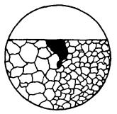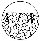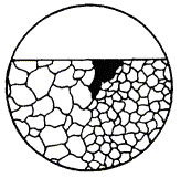 где Si - площадь i-того пятна, м2; n - количество пятен; S - площадь поверхности образца, м2. Допускается при коррозии пятнами определять степень поражения поверхности коррозией с помощью сетки квадратов. 2.3. Питтинговая коррозия 2.3.1. Максимальную глубину проникновения питтинговой коррозии определяют: измерением механическим индикатором с передвижным игольчатым щупом расстояния между плоскостью устья и дном питтинга после удаления продуктов коррозии в случаях, когда размеры питтинга позволяют осуществлять свободное проникновение игольчатого щупа к его дну; микроскопически, после удаления продуктов коррозии измерением расстояния между плоскостью устья и дном питтинга (метод двойной фокусировки); микроскопически на поперечном шлифе при соответствующем увеличении; последовательным механическим удалением слоев металла заданной толщины, например, по 0,01 мм до исчезновения последних питтингов. Учитывают питтинги с поперечником устья не менее 10 мкм. Суммарная площадь рабочей поверхности должна быть не менее 0,005 м2. 2.3.2. Шлиф для измерения максимальной глубины проникновения питтинговой коррозии вырезают из области расположения наиболее крупных питтингов на рабочей поверхности. Линия разреза должна проходить через возможно большее число таких питтингов. 2.3.3. Максимальную глубину проникновения питтинговой коррозии находят как среднее арифметическое измерений наиболее глубоких питтингов в зависимости от их количества (n) на поверхности: при n < 10 измеряют 1-2 питтинга, при n < 20 - 3-4, при n > 20 - 5. 2.3.4. При сквозной питтинговой коррозии за максимальную глубину проникновения принимают толщину образца. 2.3.5. Максимальный размер поперечника питтинга определяют с помощью измерительных инструментов или оптических средств. 2.3.6. Степень поражения поверхности металла питтингами выражают долей поверхности, занятой питтингами, в процентах. При наличии большого числа питтингов с поперечником более 1 мм рекомендуется степень поражения определять по п. 2.2. 2.4. Межкристаллитная коррозия 2.4.1. Глубину межкристаллитной коррозии определяют металлографическим методом по ГОСТ 1778 на травленом шлифе, изготовленном в поперечной плоскости образца, на расстоянии от кромок не менее чем 5 мм при увеличении 50´ и более. Допускается определять глубину проникновения коррозии алюминия и алюминиевых сплавов на нетравленых шлифах. Режим травления - по ГОСТ 6032, ГОСТ 9.021 и НТД. (Измененная редакция, Изм. № 1). Механические свойства образцов металла, не подвергавшихся коррозии, принимают за 100 %. 2.4.3. Образцы изготовляют по ГОСТ 1497 и ГОСТ 11701 при определении временного сопротивления разрыву и относительного удлинения и по ГОСТ 9454 - при определении ударной вязкости. 2.4.4. Допускается применять физические методы контроля глубины проникновения коррозии по ГОСТ 6032. 2.5. Коррозионное растрескивание и коррозионная усталость 2.5.1. При коррозионном растрескивании и коррозионной усталости трещины выявляют визуально или с применением оптических или других дефектоскопических средств контроля. Допускается применение косвенных методов измерения, например, определение увеличения электрического сопротивления образца. 2.5.2. Изменение механических свойств определяют по п. 2.4.2. 2.6. Расслаивающая коррозия 2.6.2. Суммарную длину торцов с трещинами для каждого образца (L) в процентах вычисля