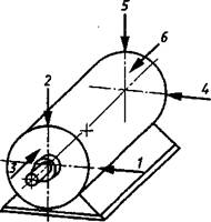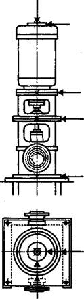 Полную оценку вибрационного состояния крупных агрегатов дают результаты измерений в контролируемых точках в трех взаимно перпендикулярных направлениях, как указано на рисунках 1а - 1д. Как правило, подобная полнота измерений требуется только для приемочных испытаний. При эксплуатационном контроле обычно выполняют одно или два измерения в радиальном направлении [как правило, горизонтальном и(или) вертикальном]. Кроме того, дополнительно можно также проводить измерения осевой вибрации, обычно в месте расположения упорного подшипника. Расположение точек измерения для машин конкретных типов должно быть приведено в соответствующих стандартах на машины этих типов. 4.3 Требования к состоянию машины при эксплуатационном контролеЭксплуатационный контроль выполняют только при полностью собранной на штатных опорах машине на месте ее эксплуатации. 4.4 Требования к опорам машины при приемочных испытаниях4.4.1 На месте эксплуатации Если приемочные испытания проводят на месте эксплуатации, роторы должны быть установлены на штатные опоры. В этом случае важно, чтобы при проведении приемочных испытаний были смонтированы все основные элементы машины; для головных образцов машин это требование является обязательным, а для серийных машин, если это невозможно, оценочные критерии должны быть соответствующим образом корректированы. Результаты сравнения вибрационного состояния однотипных машин, установленных на различных фундаментах, сопоставимы лишь при условии сходства динамических характеристик фундаментов. 4.4.2 На испытательном стенде Необходимо создать условия, при которых исключается совпадение частот собственных колебаний испытательной установки с частотой вращения машины или с какой-либо из ее мощных гармоник. Обычно полагают, что данное требование выполняется, если значение горизонтальной и вертикальной вибрации несущих элементов фундамента вблизи опор подшипников не превышает 50% значения вибрации соответствующего подшипника в том же направлении. Испытательная установка не должна вызывать также изменений значения какой-либо из основных собственных частот машины в эксплуатации. Если резонансы опоры устранить не удается, следует проводить приемочные испытания полностью собранной машины на месте эксплуатации. Приемочные испытания машин некоторых классов, например небольших электрических машин, проводят на упругом основании. В этом случае низшие собственные частоты системы машина - испытательные опоры, рассматриваемой как жесткое тело, должны быть менее 1/2 минимальной частоты возбуждения. Соответствующие условия опирания могут быть достигнуты путем установки машины на упругоопирающийся фундамент (основание) или с помощью свободной подвески на мягких пружинах. 4.5 Условия эксплуатации машиныОценка уровня вибрации должна быть проведена после достижения нормальных условий эксплуатации. Дополнительные измерения при других условиях не должны быть использованы для оценки вибрационного состояния в соответствии с разделом 6. 4.6 Оценка вибрации, наводимой внешними источникамиОценку влияния виброактивности окружающих механизмов на вибрацию конкретной машины проводят на основании результатов измерений на остановленной машине. Если измеренное значение параметра вибрации превышает ⅓ рекомендуемого предельн