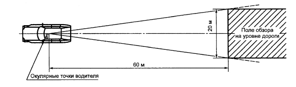 поле обзора должно быть таким, чтобы водитель мог видеть по крайней мере часть