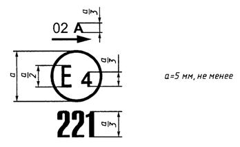 серии 02, которые вступили в силу 5 мая 4.2.4 знаки и обозначения, упомянутые в 4.2.1 и 4.2.2, должны быть ясно видимыми и нестираемыми даже тогда, когда устройство установлено на транспортном средстве. 4.3 Схема знака официального утверждения 4.3.1 Отдельные огни В пунктах 1 - 4 приложения 3 приводятся примеры знака официального утверждения с упомянутыми выше дополнительными обозначениями. 4.3.2 Сгруппированные, комбинированные или совмещенные огни 4.3.2.1 Если сгруппированные, комбинированные или совмещенные огни отвечают требованиям нескольких Правил, то на них может проставляться единый международный знак официального утверждения, состоящий из круга, в котором проставлена буква Е, за которой следует отличительный номер страны, предоставившей официальное утверждение, и номер официального утверждения. Этот знак официального утверждения может проставляться в любом месте на сгруппированных, комбинированных или совмещенных огнях при условии, что: 4.3.2.1.1 он хорошо различим после их установки; 4.3.2.1.2 ни одна из частей сгруппированных, комбинированных или совмещенных огней не может быть снята с транспортного средства без удаления знака официального утверждения. 4.3.2.2 Отличительный знак для каждого огня, соответствующий Правилам, на основании которых было выдано официальное утверждение, вместе с соответствующей серией поправок, включающих последние основные технические изменения, внесенные в настоящие Правила к моменту выдачи официального утверждения и, в случае необходимости, соответствующая стрелка, должны наноситься: 4.3.2.2.1 либо на соответствующую светоиспускающую поверхность. 4.3.2.2.2 либо на весь узел таким образом, что каждый из сгруппированных, комбинированных или совмещенных огней мог быть легко идентифицирован. 4.3.2.3 Размеры элементов единого знака официального утверждения должны быть не меньше минимального размера, предписываемого для самых маленьких отдельных знаков, проставляемых на основании официального утверждения. 4.3.2.4 Каждому утвержденному типу должен соответствовать свой номер официального утверждения. Одна и та же Договаривающаяся сторона не может присваивать один и тот же номер другому типу сгруппированных, комбинированных или совмещенных огней, подпадающих под действие настоящих Правил. 4.3.2.5 В пункте 5 приложения 3 приведены примеры знаков официального утверждения для сгруппированных, комбинированных или совмещенных огней и все упомянутые выше дополнительные обозначения. 4.3.3 Огни, совмещенные с таким типом фары, рассеиватель которой также используется для фар других типов В данном случае применяются предписания, изложенные в 4.3.2. 4.3.3.1 Однако если в различных типах фар или отдельных узлах огней, включая фару, используется один и тот же рассеиватель, то на таком рассеивателе могут проставляться различные знаки официального утверждения, относящиеся к соответствующим типам фар или отдельным узлам огней при условии, что на основном корпусе фары, даже если его нельзя отделить от рассеивателя, также имеется место, описанное в 3.3, и на нем проставлены знаки официального утверждения, соответствующие его фактическим функциям. Если для различных типов фар используется один и тот же основной корпус, то на этом корпусе могут проставляться различные знаки официального утверждения. 4.3.3.2 В пункте 6 приложения 3 приведе