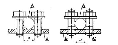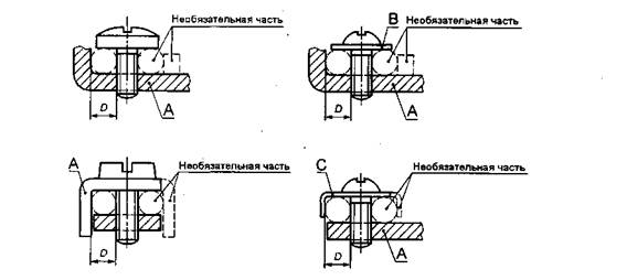 Примечание - Примеры возможных форм и размеров выводов приведены в приложении Е. Проверку осуществляют путем осмотра, измерений и введения проводников наибольшего и наименьшего поперечного сечения из указанных в таблице. Примечание - Размеры медных проводников сортамента AWG см. в приложении D. 7.1.5.3 Зажимы для проводников в выводах не должны служить для крепления каких-либо других элементов, хотя могут удерживать зажимы на месте или препятствовать их проворачиванию. Соответствие проверяют осмотром и испытаниями по 8.5. 7.1.5.4 При номинальных токах до 32 А включ. выводы должны допускать присоединение проводников без специальной подготовки. Соответствие проверяют осмотром. Примечание - Термин «специальная подготовка» подразумевает припаивание жилы проводника, использование кабельных наконечников, образование петель и т.п., но не изменение формы проводника перед его вводом в зажим или скручивание гибкого проводника для укрепления его конца. 7.1.5.5 Выводы должны быть достаточно механически прочными. Винты и гайки для зажима проводников должны иметь метрическую резьбу или другую резьбу, сопоставимую по шагу и механической прочности. Соответствие проверяют осмотром и испытаниями по 8.4 и 8.5.1. Примечание - Временно можно использовать резьбы SI, BA и UN, так как они практически эквивалентны по шагу и механической прочности метрической резьбе ИСО. 7.1.5.6 Выводы должны быть спроектированы так, чтобы зажимать проводник без значительного его повреждения. Соответствие проверяют осмотром и испытанием по 8.5.2. 7.1.5.7 Выводы должны быть спроектированы так, чтобы надежно зажимать проводник между металлическими поверхностями. Соответствие проверяют осмотром и испытаниями по 8.4 и 8.5.1. 7.1.5.8 Выводы должны быть спроектированы или скомпонованы так, чтобы ни жесткий одножильный проводник, ни жила многожильного проводника не могли выскользнуть во время затяжки винтов или гаек. Данное требование не предъявляют к шинным выводам. Соответствие проверяют испытанием по 8.5.3. 7.1.5.9 Выводы должны быть спроектированы и расположены так, чтобы при затяжке или отпускании зажимных винтов или гаек крепления выводов к АВО не ослаблялись. Примечание - Эти требования не означают, что зажимы должны проектироваться так, чтобы предотвращалось их вращение или смещение, однако любое движение должно быть достаточно ограничено, чтобы предотвратить несоответствие требованиям настоящего стандарта. Применение изолирующего компаунда или смолы считают достаточным для предотвращения ослабления крепления выводов, при условии, что: - изолирующий компаунд или смола не испытывают нагрузок в нормальных условиях эксплуатации; - эффективность изолирующего компаунда или смолы не снижается под воздействием температур, достигаемых выводом в наиболее неблагоприятных условиях, оговоренных в настоящем стандарте. Соответствие проверяют осмотром, измерением и испытанием по 8.4. 7.1.5.10 Зажимные винты и гайки выводов, предназначенных для присоединения защитных проводников, должны быть надежно защищены от возможности случайного ослабления их затяжки. Соответствие проверяют испытанием вручную. Конструкции выводов, примеры которых приведены в приложении Е, достаточно упруги и удовлетворяют этому требованию; для других конструкций могут потребоваться специальные меры, например применение