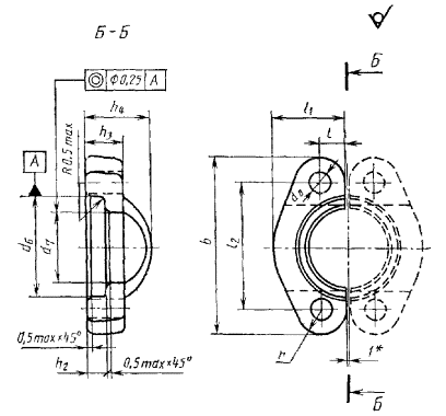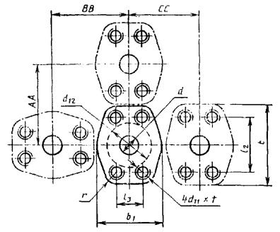 Примечания: 1. t - длина резьбы под болт. 2. b1 - максимально допустимая ширина разъемного фланца. 3. Размеры АА; ВВ; СС обеспечивают необходимый зазор 1,5 мм между фланцевыми соединениями одного номинального размера на рядом расположенных корпусах. 2. ТЕХНИЧЕСКИЕ ТРЕБОВАНИЯ2.1. Механические свойства металла (временное сопротивление σв, относительное удлинение δ5) для изготовления разъемных полуфланцев должны быть не ниже указанных в табл. 3. Таблица 3