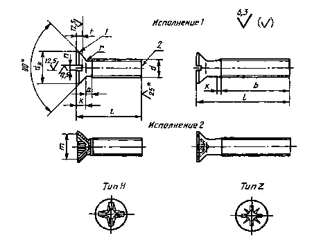 Дата введения 1994-01-01 Настоящий стандарт распространяется на винты с потайной головкой с прямым и крестообразным шлицем классов точности А и В с номинальным диаметром резьбы от 1 до 20 мм. Требования настоящего стандарта являются обязательными. Дополнительные требования, отвечающие потребностям народного хозяйства, выделены подчеркиванием, а также приведены в приложении. 1. РазмерыКонструкция и размеры винтов должны соответствовать указанным на рисунке и в таблицах 1 и 2.