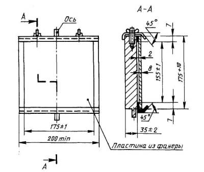 - по одному удару по каждой из двух оставшихся сторон образца после поворота листа фанеры на 60° в противоположном направлении.