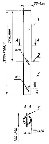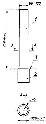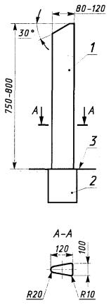 ГОСТ Р 50970-96 ГОСУДАРСТВЕННЫЙ СТАНДАРТ РОССИЙСКОЙ ФЕДЕРАЦИИ ТЕХНИЧЕСКИЕ СРЕДСТВА СТОЛБИКИ СИГНАЛЬНЫЕ ДОРОЖНЫЕ ОБЩИЕ ТЕХНИЧЕСКИЕ ТРЕБОВАНИЯ. ПРАВИЛА ПРИМЕНЕНИЯ ГОССТАНДАРТ РОССИИ Москва Предисловие 1 РАЗРАБОТАН И ВНЕСЕН Техническим комитетом по стандартизации «Безопасность дорожного движения» (ТК 278). 2 ПРИНЯТ И ВВЕДЕН В ДЕЙСТВИЕ Постановлением Госстандарта России от 13 ноября 1996 г. № 621 3 Стандарт полностью соответствует требованиям Конвенции о дорожных знаках и сигналах (Вена 1968 г.) и Европейского соглашения, дополняющего эту конвенцию (Женева 1971 г.) 4 ВВЕДЕН ВПЕРВЫЕ СОДЕРЖАНИЕ ГОСТ Р 50970-96 ГОСУДАРСТВЕННЫЙ СТАНДАРТ РОССИЙСКОЙ ФЕДЕРАЦИИ Технические средства организации дорожного движения СТОЛБИКИ СИГНАЛЬНЫЕ ДОРОЖНЫЕ Общие технические требования. Правила применения Traffic control devices. Guide posts. Дата введения 1997-07-01 1 ОБЛАСТЬ ПРИМЕНЕНИЯНастоящий стандарт распространяется на столбики сигнальные дорожные, предназначенные для установки на автомобильных дорогах. 2 НАЗНАЧЕНИЕ И ТИПЫ СИГНАЛЬНЫХ СТОЛБИКОВ2.1 Сигнальные столбики являются элементом обустройства дорог и предназначены для зрительного ориентирования участников дорожного движения. 2.2 Сигнальные столбики подразделяют на типы: простые - корпус и опорная часть представляют монолитную конструкцию; составные - корпус и опорная часть представляют самостоятельные конструкции, соединенные между собой при монтаже на дороге с помощью специальных удерживающих устройств различной конструкции. 2.3 Форма и размеры простых сигнальных столбиков должны соответствовать указанным на рисунках 1 - 5, составных - на рисунках 6 - 8. 2.4 Простые сигнальные столбики изготавливают из: железобетона - по размерам, указанным на рисунке 1; дерева - по размерам, указанным на рисунке 2, труб асбестоцементных или пластмассовых - по размерам, указанным на рисунке 3; металла - по размерам, указанным на рисунке 4; полос пластмассовых - по размерам, указанным на рисунке 5. 2.5 Составные сигнальные столбики изготавливают из пластических масс по размерам, указанным на рисунках 6 - 8. 2.6 Меньшие продольные размеры простых сигнальных столбиков, показанных на рисунках 1 - 5, соответствуют случаю их установки на дорогах с использованием анкерных устройств. 2.7 Поперечное сечение сигнальных столбиков может представлять собой прямоугольник, треугольник с закругленными углами, круг, кольцо или его часть. Форма и размеры простых сигнальных столбиков Рисунок 1 Рисунок 2 Рисунок 3 1 - корпус столбика; 2 - поверхность земли; 3 - анкерное устройство * В скобках указаны размеры для случаев использования анкерных устройств. Форма и размеры простых сигнальных столбиков Рисунок 4 Рисунок 5 1 - корпус столбика; 2 - анкерное устройство; 3 - поверхность земли Форма и размеры составных сигнальных столбиков Рисунок 6 Рисунок 7 Рисунок 8 1 - корпус столбика; 2 - опорная часть с удерживающим устройством; 3 - поверхность земли 3 ТРЕБОВАНИЯ К КОРПУСУ СИГНАЛЬНЫХ СТОЛБИКОВ3.1 Сигнальные столбики следует изготавливать в соответствии с требованиями настоящего стандарта по техническим документам на эти изделия. 3.2 Корпус столбика следует изготавливать из материалов белого цвета или окрашивать в белый цвет. На корпусе столбика должна быть нанесена вертикальная разметка, способствующая его видимости как в светлое, так и в темное время суток. 3.3 Сигнальные столбик