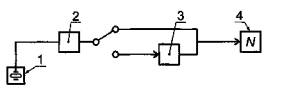 Б.5.1 Длительность действия ударного ускорения может быть измерена как время нахождения в контакте металлических соударяющихся поверхностей с помощью осциллографа [схемы измерений - (рисунок Б.11)] или любым иным методом. Порог срабатывания осциллографа настраивают несколько выше падения напряжения на резисторе R1 при разомкнутой цепи бойка-наковальни. Значение сопротивления резистора R1 рекомендуется принимать равным 0,1 - 1,0 кОм, резистора R2 равным (5 - 10) R1; напряжения источника питания - 1 - 12 В.