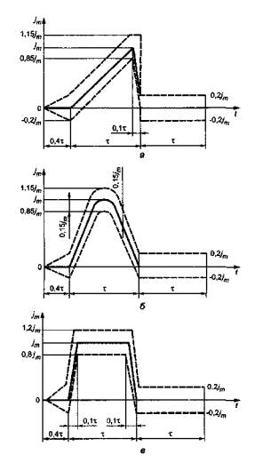 Если осциллограмму импульса ударного ускорения можно заключить между пунктирными линиями, соответствующими допускам: