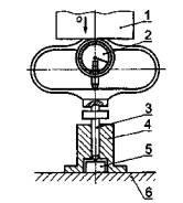 1 - поршень пресса; 2 - динамометр; 3 - инерционное тело; 4 - крешерное устройство; 5 - крешер; 6 - стол пресса |