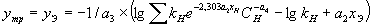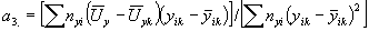 В вариантах 4 и 5, где дисперсию вычисляют не по отношению к поверхности отклика, а по отношению к линии регрессии, последние два члена формулы (А.4) могут отсутствовать или заменяться членом, определяющим регрессию среднего значения данных и полученным при других концентрациях или влажностях. Конкретные выражения для b и значения N выбирают по указаниям, приведенным для каждого варианта А.3.