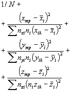 знаменатели определяются дисперсиями коэффициента регрессии и по х, у и z, а числители определяются увеличением дисперсии по мере удаления от центра испытаний.