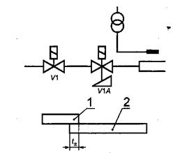 V1 - основной предохранительный отсечной газовый клапан; V1A - основной предохранительный отсечной газовый клапан медленного открытия; ts - время безопасности; 1 - зажигание; 2 - основная горелка Рисунок 2b - Прямое зажигание основной горелки при пониженном расходе