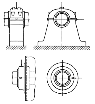 Примечание - Указанные значения применяют при измерениях радиальной вибрации на всех корпусах (опорах) подшипников в установившемся режиме работы на номинальной скорости, а также для осевой вибрации упорных подшипников. Типичные положения точек измерений приведены на рисунке 1. |