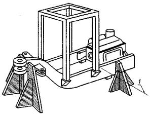 1 - рама не имеет контакта с платформой стенда Рисунок 11 - Закрепление рамы землевоза при испытании ROPS Примечание - Типичное, но необязательное расположение.