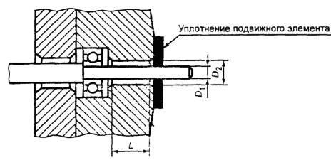 Примечание - Для максимальных размеров отверстия от 305 до 915 мм эффективная ширина уплотненного соединения должна быть увеличена на 0,003 мм на каждый миллиметр увеличения размера отверстия св. 305 мм. 13.2. Рабочие стержни, шпиндели или валы 13.2.1. Электрооборудование, отвечающее требованиям «исполнение DIP B20 или DIP B21» и 20.4.3 настоящего стандарта, должно быть пыленепроницаемым независимо от состояния уплотнений подвижного элемента. 13.2.2. В случае использования уплотнения подвижного элемента электрооборудование должно отвечать требованиям таблиц 4, 5 и подвергаться испытаниям на пыленепроницаемость по 20.4.3 без установки уплотнений подвижного элемента. 13.2.3. Приводные валы для передачи движения при частотах вращения 100 об/мин и более (рисунок 5) должны отвечать требованиям таблицы 4 по длине соединения от внутренней поверхности корпуса до внешней. Рисунок 5 - Приводные валы для частоты вращения 100 об/мин и более Таблица 4 - Приводные валы для частоты вращения 100 об/мин и более В миллиметрах